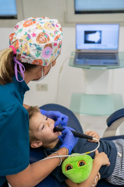 Introducendo la punta dello scanner all’interno del cavo orale e muovendolo lungo l’arcata dentale, nell’arco di qualche minuto è possibile ottenere un’impronta dentale digitale in maniera più veloce e meno invasiva di quella ottenuta dal calco tradizionale, ormai desueto.