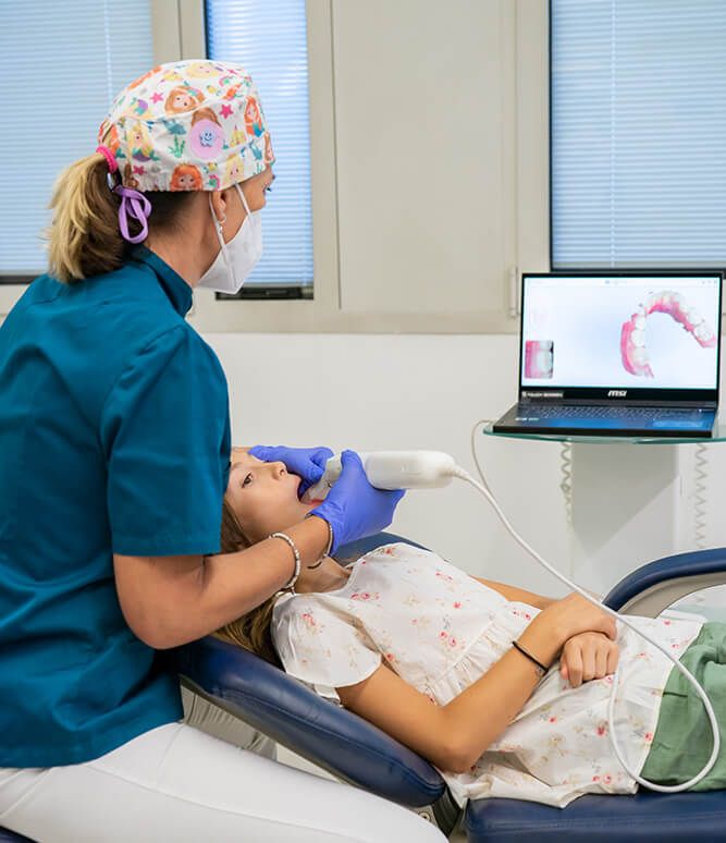 Lo scanner intraorale è uno strumento con un sistema di misurazione tridimensionale utilizzato per raccogliere informazioni su forma e dimensioni delle arcate dentarie attraverso l’emissione di un fascio luminoso (raggio laser) sulla superficie dei denti. Le telecamere ad alta risoluzione raccolgono le informazioni che vengono processate da un software che riproduce il modello 3D virtuale delle arcate dentali e dei tessuti molli del paziente, digitalizzando completamente l’anatomia della bocca. Dal modello 3D generato dallo scanner dentale, è possibile eseguire una serie di pianificazioni chirurgiche, protesiche o ortodontiche sulla base delle quali si realizzano i dispositivi necessari. Se ritenuto opportuno dall’odontoiatra, lo scanner intraorale può essere utilizzato al posto del calco dei denti tradizionale per ottenere modelli virtuali delle arcate del paziente: questo strumento è impiegato per la rilevazione dell’impronta dentale 3D necessaria alla modellazione e realizzazione di restauri protesici (corone singole, protesi fisse parziali o complete), in ambito chirurgico e nel campo dell’odontoiatria sia estetica che tradizionale.
